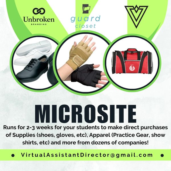 Through our partners at GuardCloset, and support of TeamIP, DSI, StylePlus, Capezio's, Cousin's Concert Attire, Dinkles, Drillmasters and many more, we can be the online store to allow your students to purchase directly. All products are shipped at once to the school after the store closes
