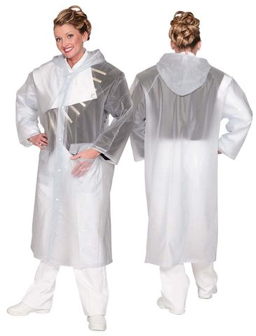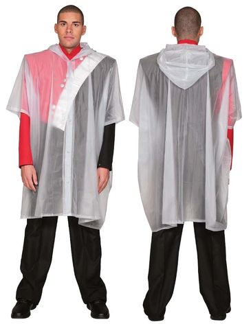 One size fits all. Soft, pliable PVC poncho with hood offers inexpensive protection for your uniforms.